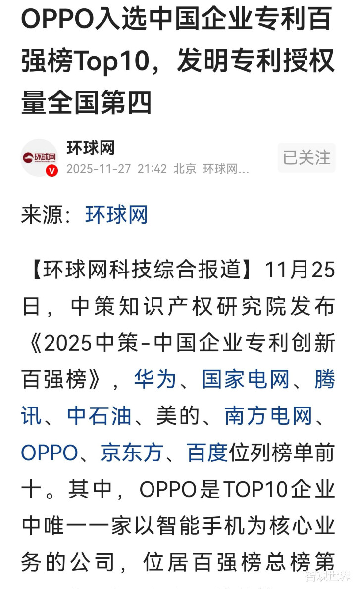 据环球网消息,中策知识产权研究院发布《2025中策-中国企业专利创新百强榜》,华为、国家电网、腾讯、OPPO、美的、京东方等位列榜单前十,其中华为分别位列创新榜第一,授权榜第二。