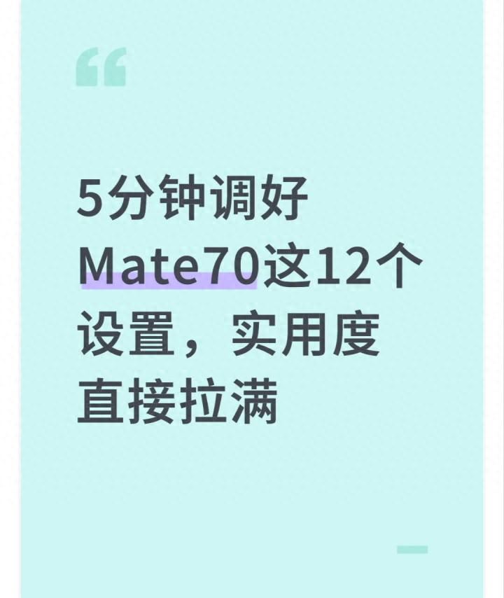 其实华为Mate70的硬件本身就很强,这些设置不是什么花哨功能,都是能实实在在提升体验的刚需操作。花5分钟调完,续航变长了,操作变顺了,隐私也有保障了,才能真正发挥出它的全部实力。
